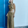 O top bordado Ipa é pura celebração ao verão: top tipo lenço halter em tule bordado manual com paetês dourados, traduz glamour democrático e sofisticação festiva. O top possui amarração nas costas para ajuste perfeito e efeito profundo que proporciona movimento e leveza.
