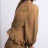 Os babados aplicados em diagonais estratégicas percorrem o corpo do vestido, trazendo um romantismo moderno e uma dose de personalidade rocker, perfeita para quem busca protagonismo sem abrir mão do conforto. O recorte nas costas adiciona sensualidade sutil, equilibrando delicadeza e atitude em uma proposta sofisticada e atual.